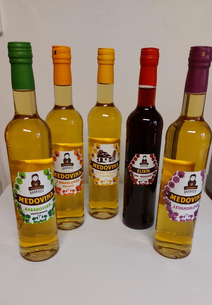 Medoviny klasické i ochucené. 0,2; 0,25 a 0,5 l. Med medovicový.