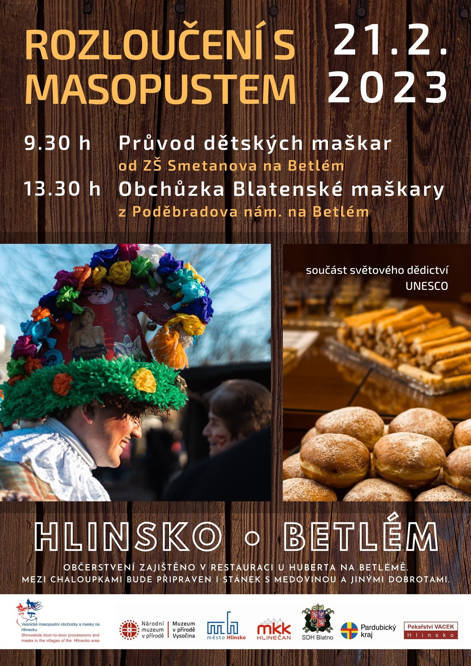 Rozloučení s masopustem - Hlinsko - 17. 2. od 9 h průvod dětských masek od ZŠ Smetanova městem a od 14 h obchůzka blatenské maškary na Betlémě