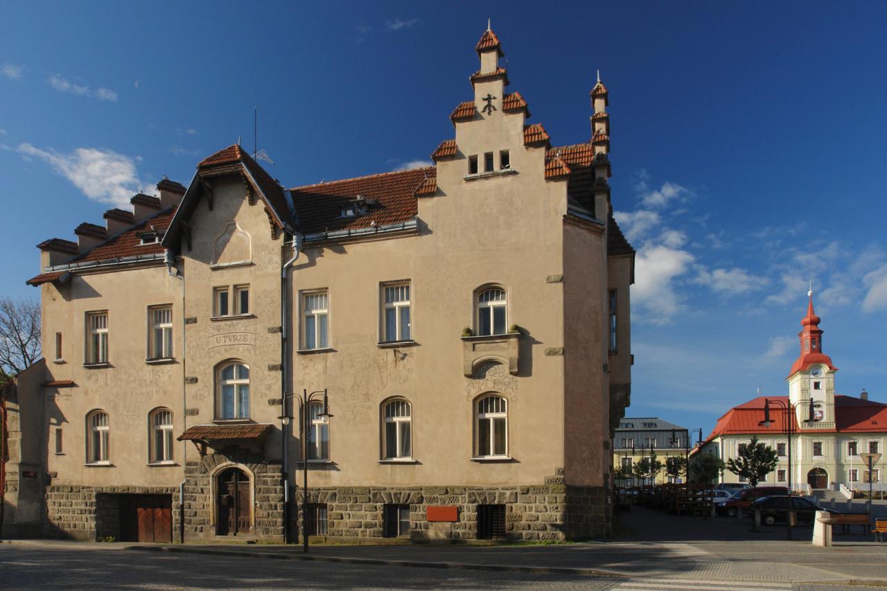 Stavbu v roce 1904 projektoval inženýr architekt profesor Ladislav Skřivánek. Dům je postaven v novogotickém stylu s bohatě zdobenými atikami. Fasáda je pomalována freskami od akademického malíře Ladislava Nováka. Dvě fresky představují krále Jiřího z Poděbrad na koni a Beneše z Vartenberka, v 1. polovině 14. století majitele hradu a panství rychmburského, ke kterému Hlinsko náleželo. Dolní dvě fresky znázorňují hrnčířství a tkalcovství, řemesla typická pro Hlinsko. Na poslední fresce je výjev z konce třicetileté války, jak Hlinečtí porazili švédský loupeživý oddíl u Sloupného. Fresky byly v roce 1975 restaurovány.